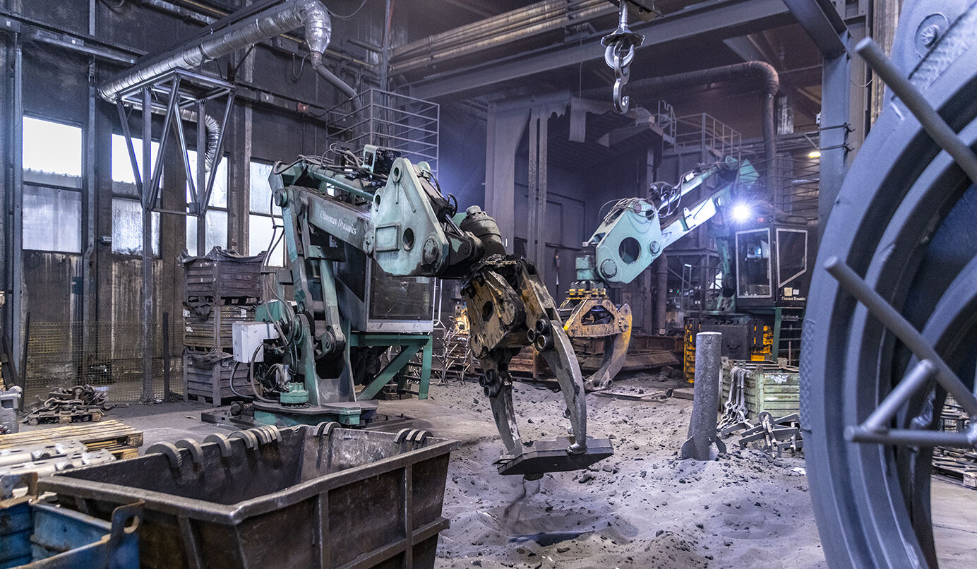 In 2012, the post pouring line was fully mechanized with the elimination of all manual work. In particular, there is an automatic shake out machine served by a Clansman manipulator with maximum load of 4000Kg and it’s connected to the shot blasting line by another Clansman manipulator with maximum load of 3000Kg.