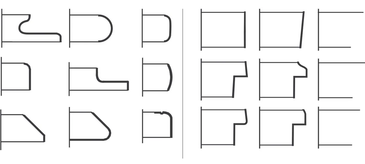 边缘最大可扩展至100 mm。使用的边缘可以是蜜胺、塑料(PVC、PP、ABS)材质的软质或硬质单板。