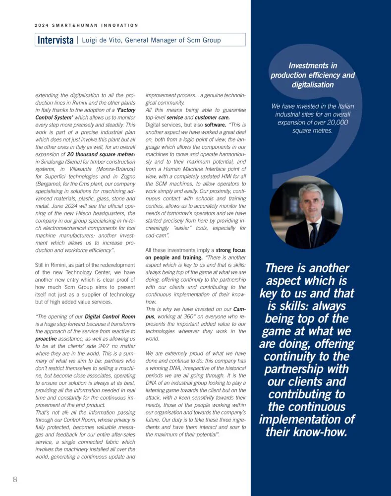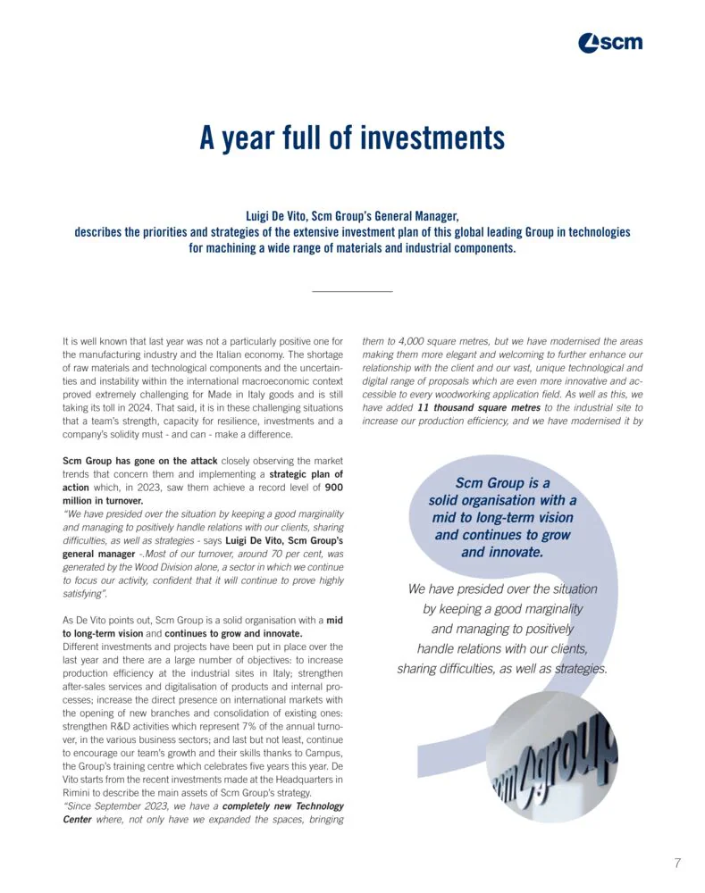 SCM将这个版次的杂志重点放在技术发展上,包括了使用SCM机床和生产系统的许多公司所叙述和尝试的成果,这些机床和生产系统能够满足他们的新需求,并快速响应各种变化的迹象。