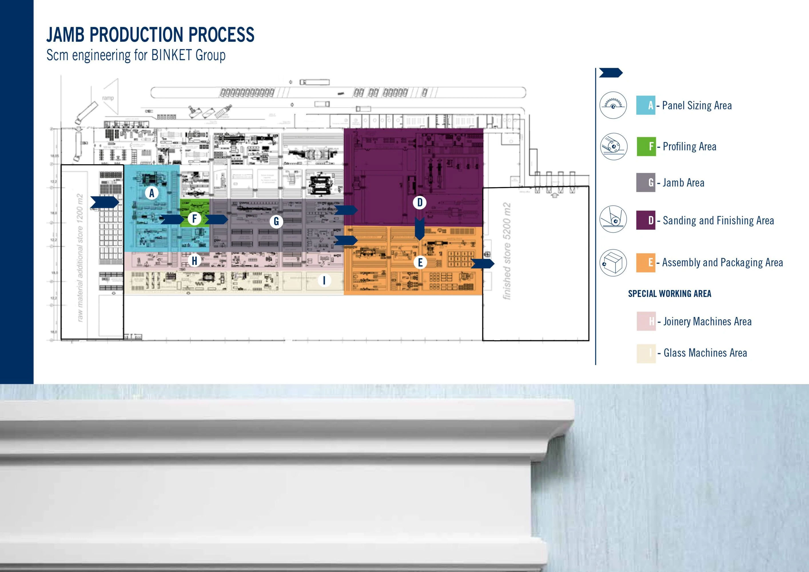 The meeting with SCM, one of the protagonists of the global market of advanced industrial woodworking technologies, and the solid and profitable partnership that followed, allowed the ideas to be turned into facts. The result was the creation of a concrete project for an innovative turnkey factory, with a high level production both in terms of the final product and in the machining process.