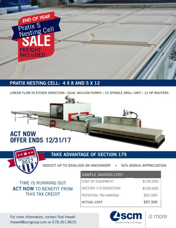 Take advantage of Section 179. Deduct up to $ 500,000 on machinery, 50% bonus appreciation. Time is running out: act now to benefit from this tax credit. For more information, contact Rob Howell at [email protected] or 678.361.8635.