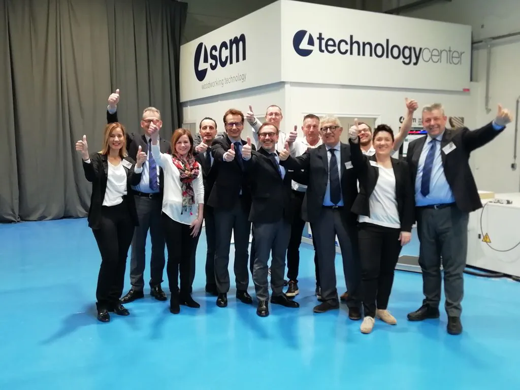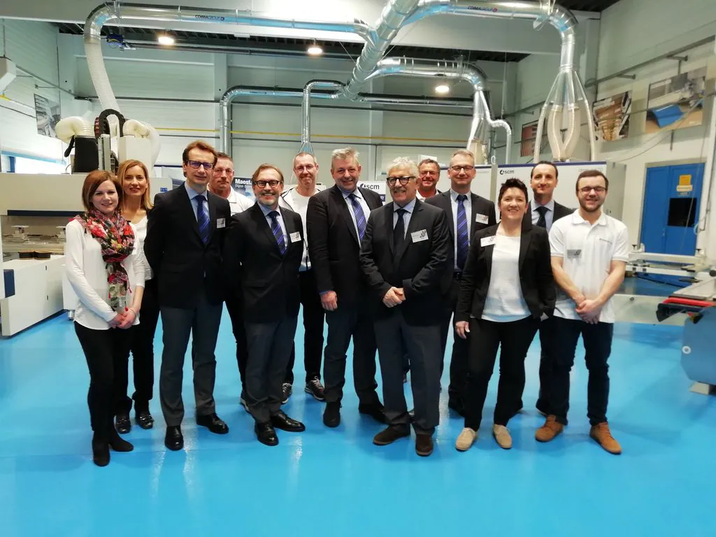 Everything is ready for the official opening of SCM Austria, the new branch that confirms and further reinforces SCM’s presence on the Austrian market. In the build-up to the opening ceremony and classic ribbon cutting ritual, scheduled for noon tomorrow, customers and specialised woodworking companies were already being welcomed this morning. The professional experts and entrepreneurs visiting the new branch in Ansfelden (Linz) were introduced to the team of technicians and sales engineers who are ready to provide our Austrian clientele with direct, exclusive, 360-degree backup and after-sales services. Great interest was also shown in the new branch’s Technology Center, where open house visitors can enjoy a first-hand experience of the various SCM solutions selected for this market along with real time technical demonstrations of the machines and their software and digital services.