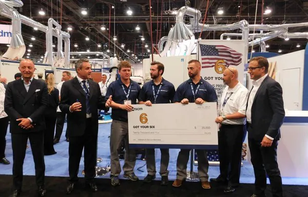 SCM is donating $20,000 to Got Your 6, a social movement that empowers and supports veterans and their families. The company announced the donation in a special ceremony at its booth during the AWFS Fair. The biennial woodworking fair was held July 19-22 in Las Vegas.
