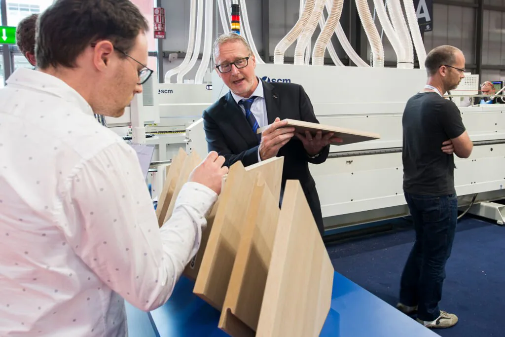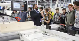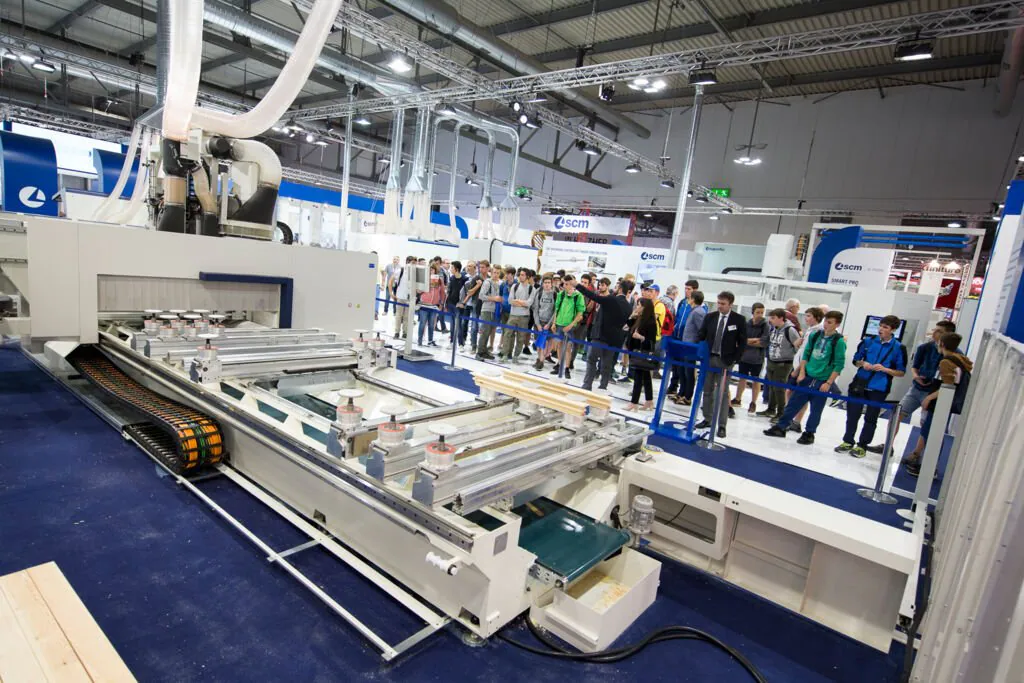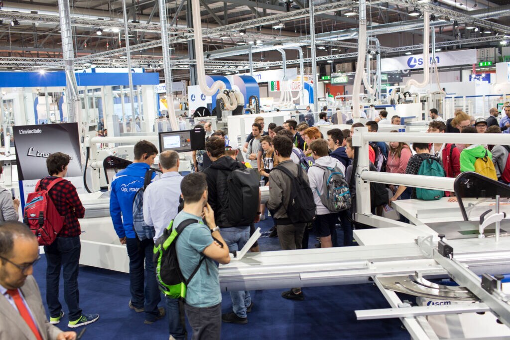 来自木工行业专业培训学校的培训班络绎不绝地前来Xylexpo展参观 - SCM展台成为主要的关注点之一。今日早些时候,SCM意大利公司经理 Luca Bergantini接待了来自Isis Fermo Solari of Tolmezzo的师生,该机构是意大利最先进的木结构教育中心之一,SCM已为其提供了多个高度创新的加工中心。