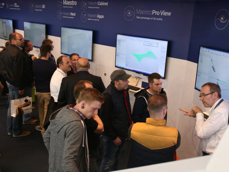 More than 100 German companies manufacturing furniture, doors and windows, staircases and design creation with the 5-axis machining centres attended the event. Great attendance also for the woodworking journalists interested in understanding the “Xylog Maestro” developments, the SCM Group working centres software suite.