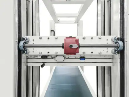 Automatic loading and unloading of the cabinet on belt conveyor with automatic furniture size recognition system.