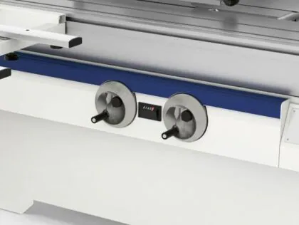The hand-wheels on the machine front, for the saw blade unit moving, are easy to use; every minimum hand-wheel movement corresponds to an exact blade adjustment.