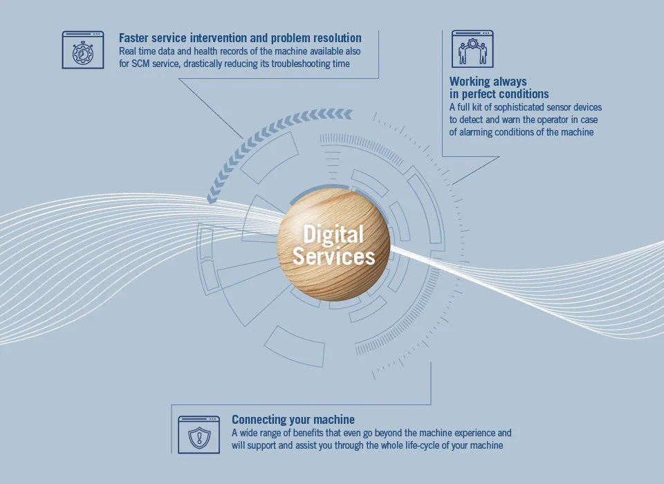 SCM 数控机床控制软件解决方案和数字服务专为家具工厂生产以及监控、维护和技术援助而设计。