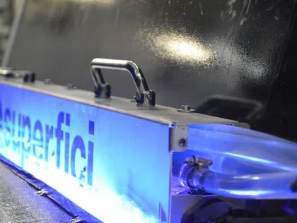 Thanks to an intense work in cooperation with the main finishing manufacturers, Superfici has optimized the various systems of its range to meet the demands of applied energy levels, emission wavelengths and efficiency expressed precisely by the various lacquers products. Suitable systems for both wood finishing and graphic arts.