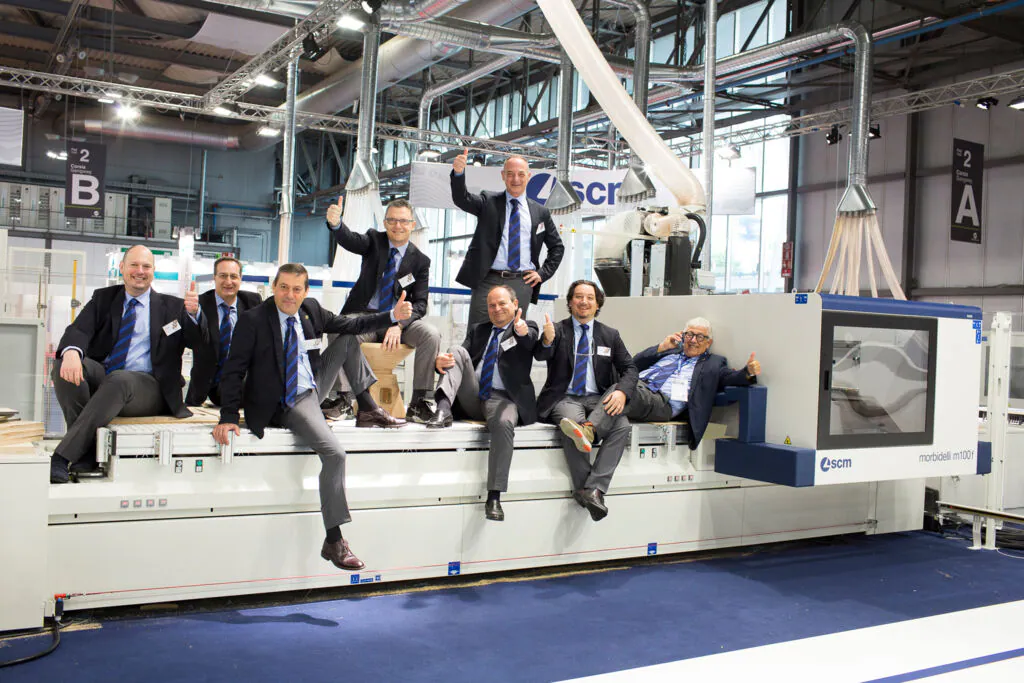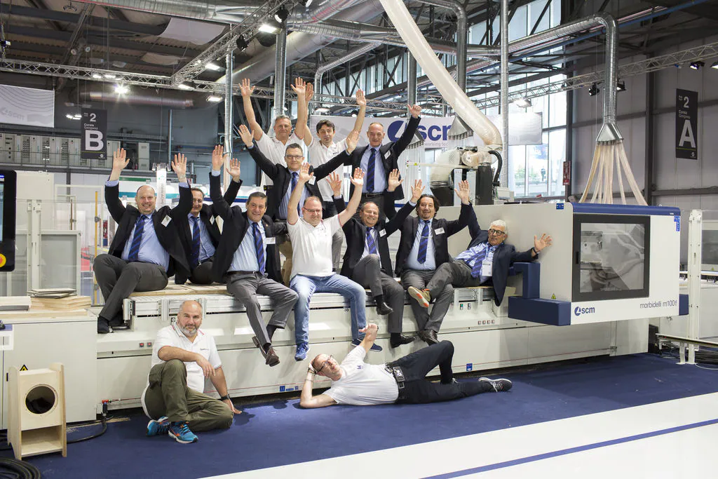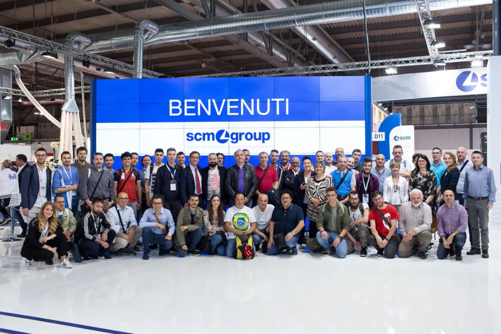 In addition to the many customers, who flocked to the fair to see with their own eyes SCM’s latest digital and technological innovations, dozens of Group employees came from various Italian factories: from Rimini to Villa Verucchio and San Marino, from Thiene to Zogno (CMS headquarters). Giovanni Gemmani, SCM Group President, welcomed and thanked them for coming, demonstrating a strong sense of belonging and a team spirit that continue to bind such a large team as ours.