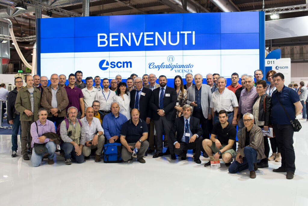 One of the largest delegations to visit us on Saturday was that of Confartigianato from Vicenza, a group of some fifty wood industry professionals and operators who were welcomed by Luca Bergantini, SCM Regional Manager, Italy, and Gabriele Mingo, Area Manager for North East Italy.