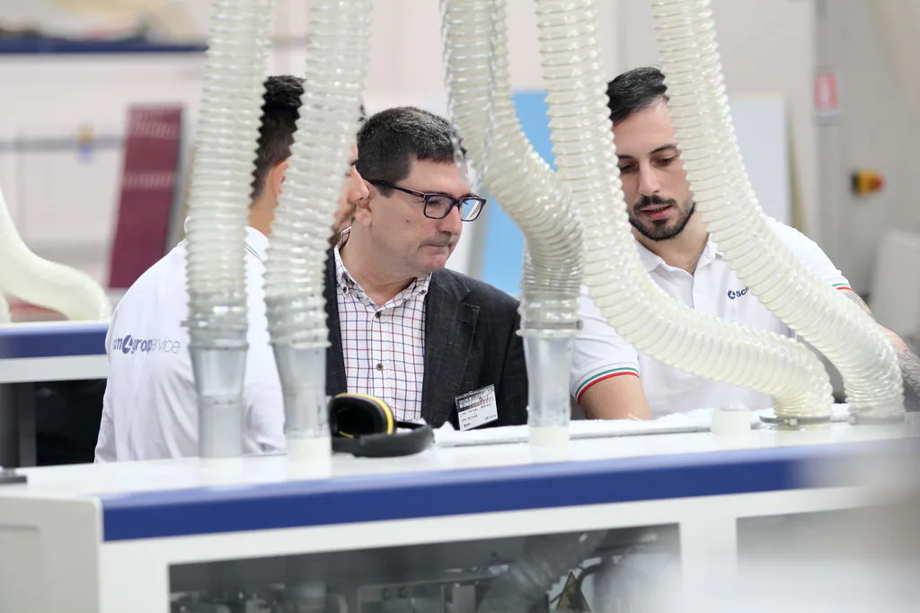 A preview of morbidelli ux200d was also presented - ensuring optimal processing of both small and large panels. Among the main assets, the new exclusive dowelling system and the new Clamex operating groups for increasingly customised joints.