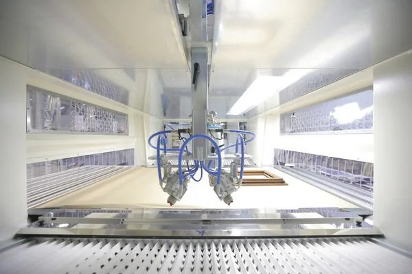 Демонстрируется Bravorobotпокрасочный робот с трёхмерным считыванием деталей, служащий для высококачественного распыления лакокрасочного материала на панели, в том числе специфической формы и со сложным профилем боковых сторон. Робот Maestro представляет собой законченное решение высокого уровня для покраски рамных изделий. Высокой оценки заслуживают также ультрафиолетовые системы Led Matrix, очерчивающие новые горизонты в сфере полимеризации лакокрасочных материалов с УФ-отверждением, - разумный выбор для тех, кто обращает особое внимание на сокращение расхода энергии.