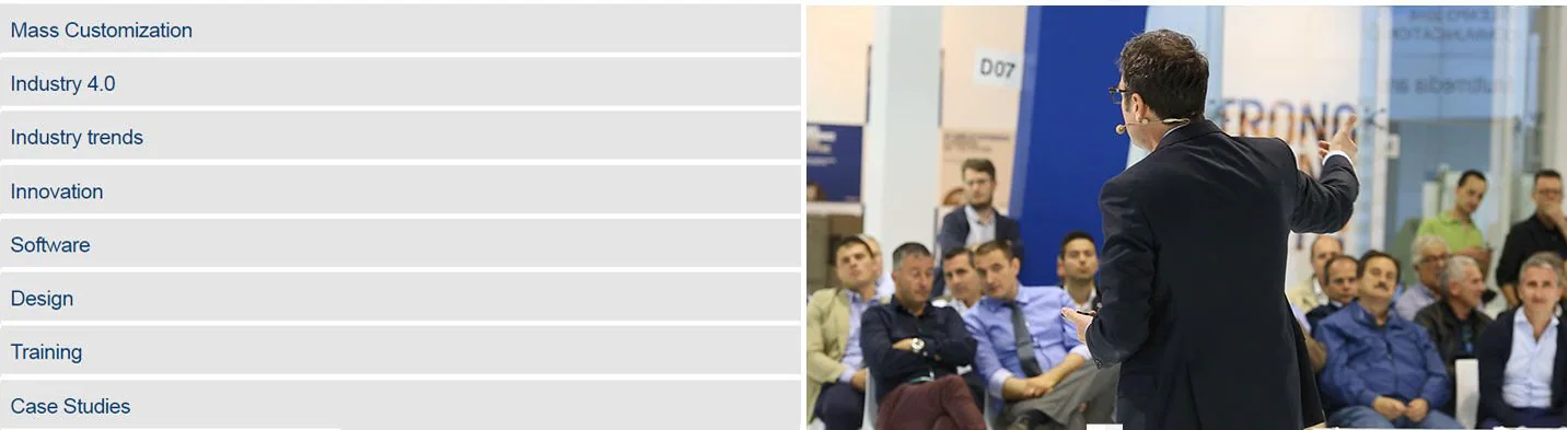 Будущее деревообрабатывающих технологий в центре внимания: вас ждет демонстрация мира технологии 4.0 с помощью авторитетных выступлений наших экспертов и именитых докладчиков, которые работают на международном рынке.