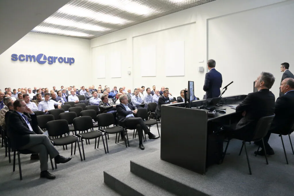 In-depth knowledge of the products, investments, widespread presence and strong sharing of objectives: these are the strengths that must characterise the sales network, as pointed out by the Director of the Scm Division, Luigi De Vito, in his opening speech. Selling high-tech solutions, but above all, value: this is the strategy underlying the October 18th training which will be followed by two days devoted to customers - as was the case for "Author R-Evolution" last year and as will happen for the next "Smart & Human Factory" Open House from 31 January to 2 February 2019, entirely focused on human-robot interaction and the new nesting generation.