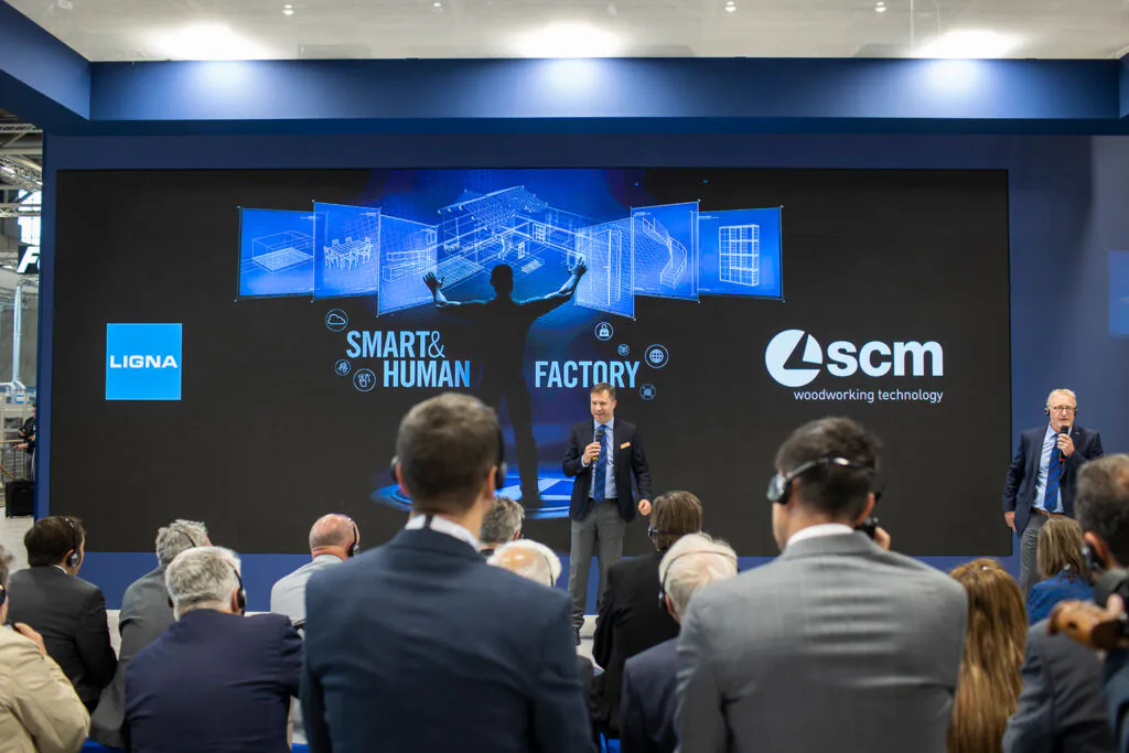 Помимо экспозиции в павильоне, SCM также присутствовала на Ligna.stage благодаря своим экспертам, которые представили доклады на различные темы: "Люди и технологии: новая парадигма; "Автономное производство – новые задачи и возможности"; "УФ светодиодная полимеризация, путь к более эффективным и экологичным УФ процессам".