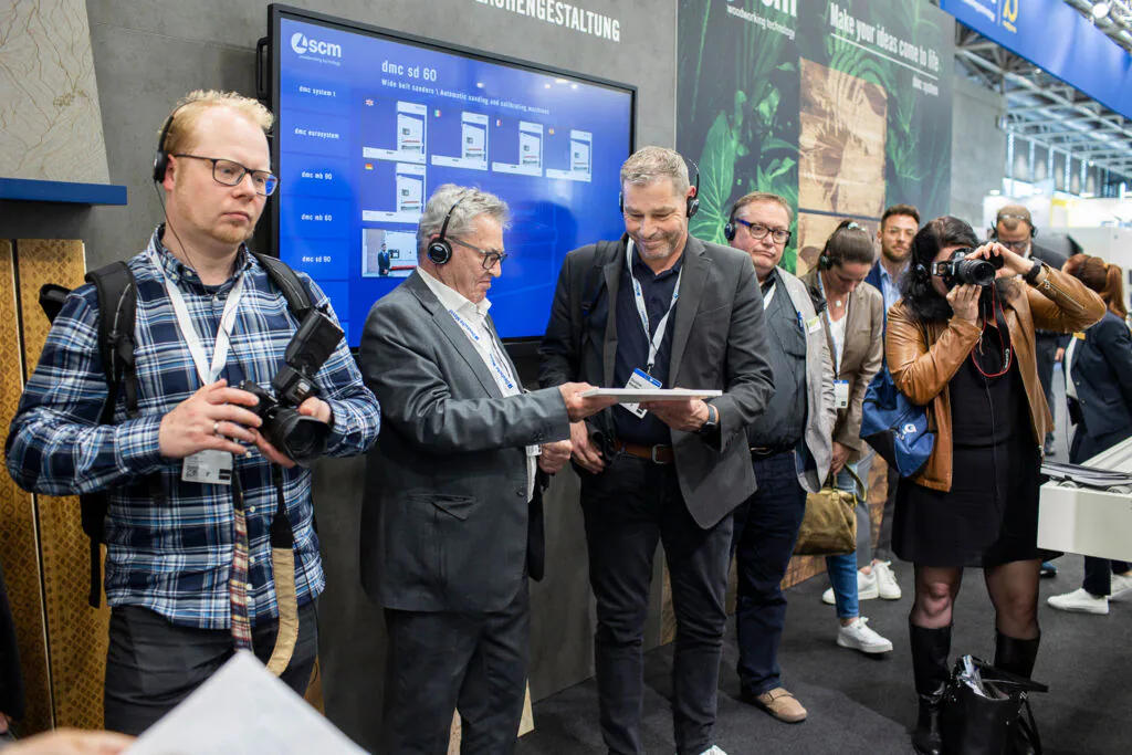 Второй день выставки был самым активным с точки зрения посещаемости экспозиции. На стенде SCM присутствовало большое количество журналистов из ведущих специализированных изданий мировой прессы. В рамках пресс-конференции состоялось выступление генерального директора Scm Group, директора подразделения Wood Division Product&Markets, и главы региона DACH. Также был организован технологический тур для ознакомления со всеми инновациями группы.