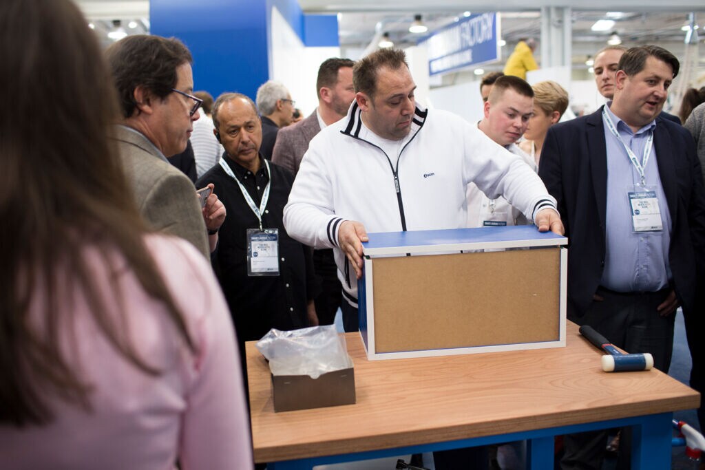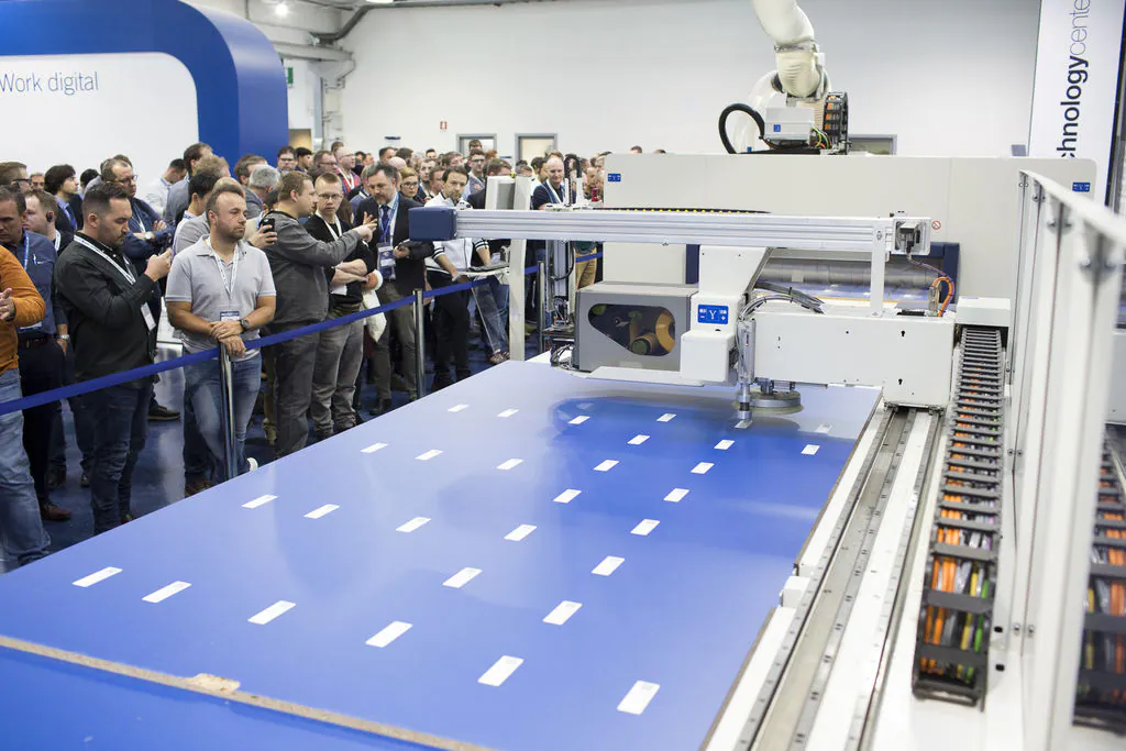 Клиенты из разных стран мира смогли рукой потрогать интегрированные решения в ходе демонстрации процессов обработки четырех типов тумбочек на обрабатывающих центрах последнего поколения, состоящих из технологий SCM, промышленных коллаборативных роботов, соединенных шаттлами с автономным приводом.