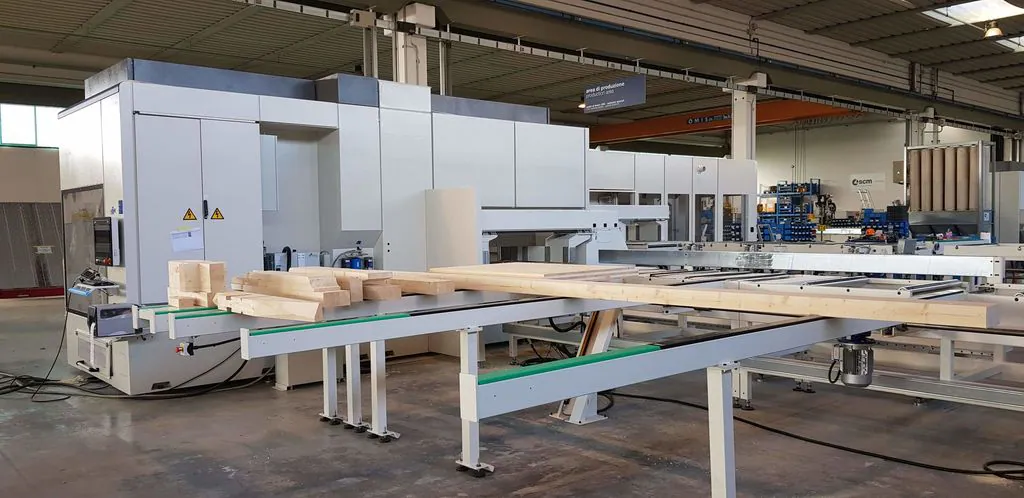 Nach dem Abschluss einer 4-tägigen Schulung in der SCM-Fabrik in Sinalunga war die OIKOS 12 der Kristof Van Dun BVBA auch komplett auf alle möglichen Anforderungen bei der Bearbeitung von Leimholz und Eichenbalken sowie von großen BSP-Platten getestet.