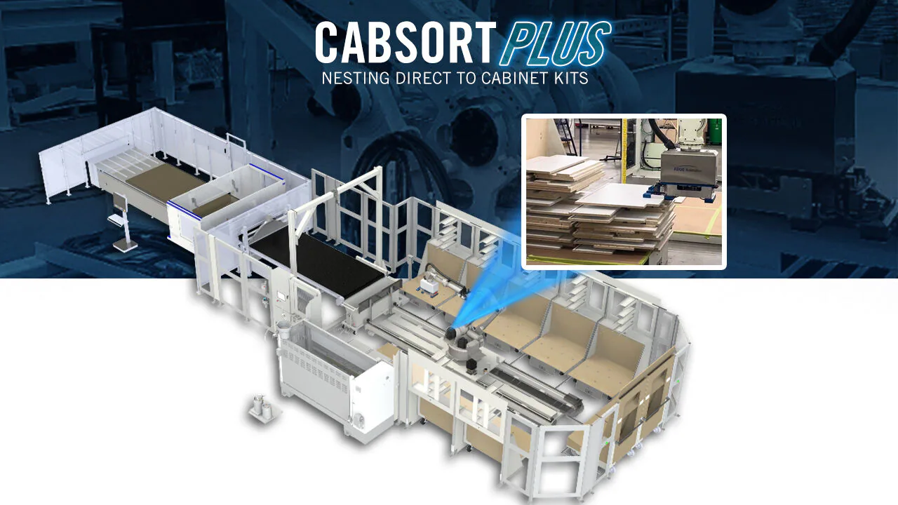 The Lean Cell features the new Morbidelli X200 developed specifically for high-speed nesting and robotic sorting and stacking as well as doweling. SCM will show the added dimension of SORTING. The cell will group end panels and cabinet parts in a way to keep like cabinet parts together and all aligned on the same axis for edgebanding.