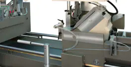 Double mitre saw with a fixed unit on the left and the other one movable.