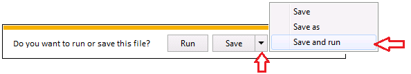 Depending on your browser, you may see a prompt (usually at the top or bottom of your page) asking what you would like to do with the file. If you have the option, select ‘Save and run’, then browse to your desktop, and click save.
