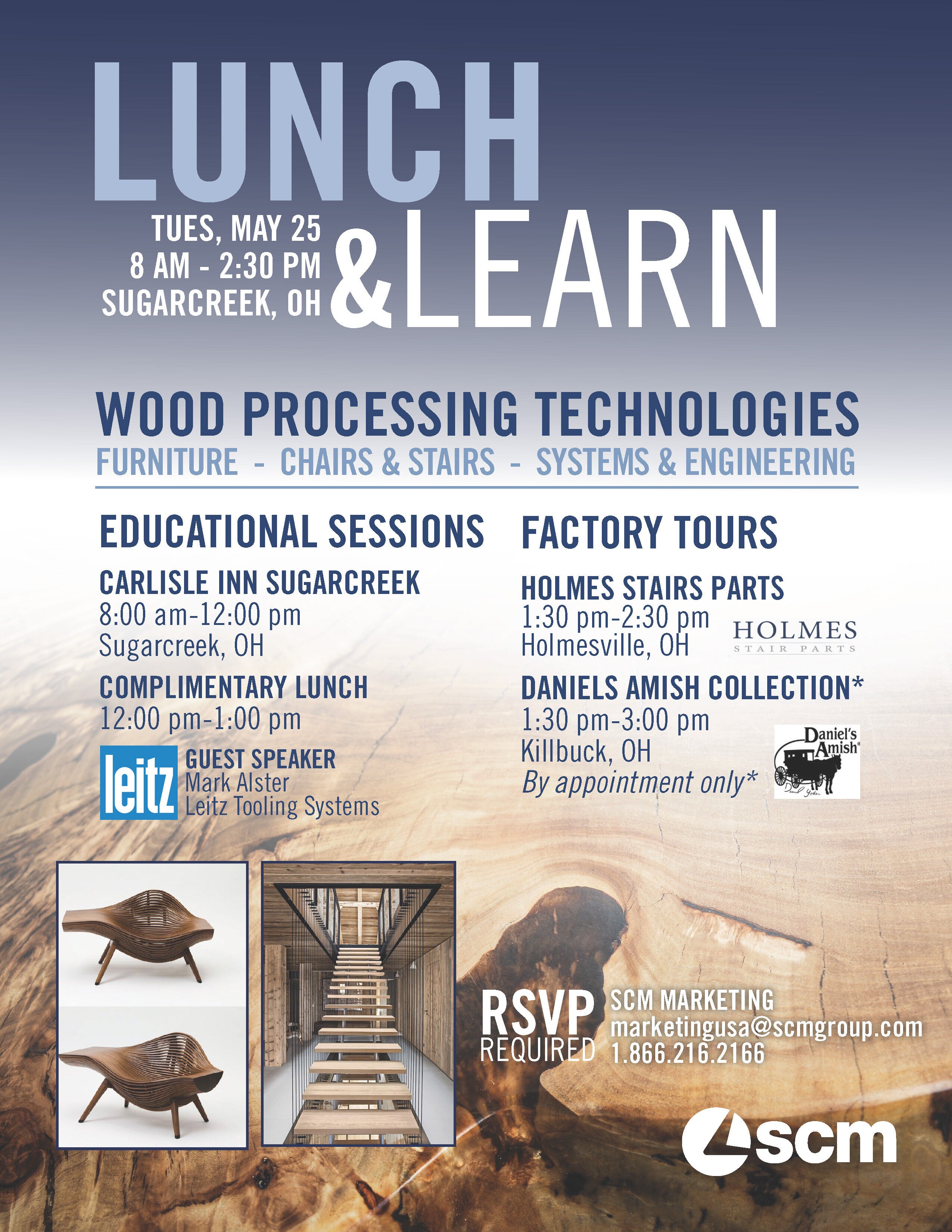 SCM North America is pleased to welcome you to an educational seminar coupled with a local tech tour on May 25 in Sugarcreek, OH. Learn from prominent thought leaders as they share top trends and address challenges facing the solid wood sector. This event is back by popular demand and will fill up quickly so save your seat today!