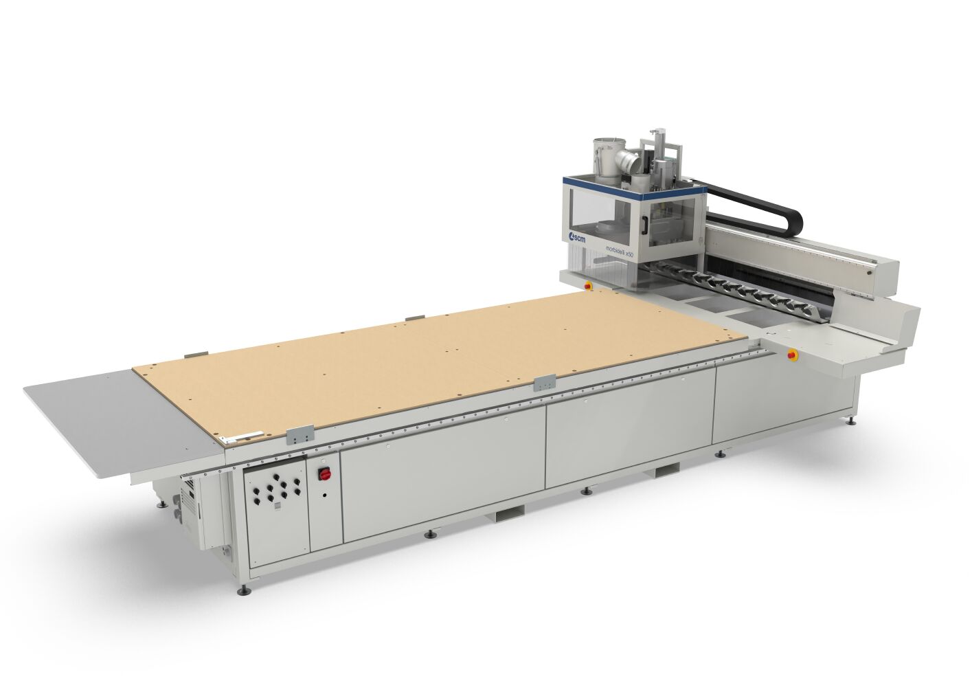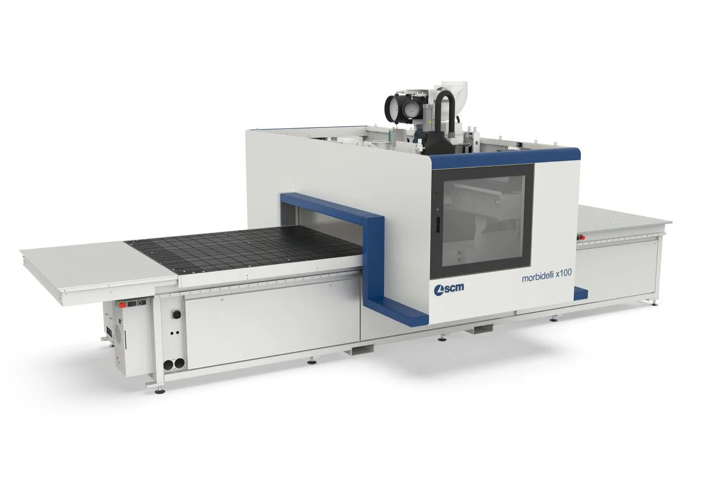The models also include SMS (Spoilboard Management System) software for efficient spoil panel management, and the morbidelli x50 introduces High Grip Vacuum technology for superior piece grip, even on smaller panels. Safety is ensured with the SAFE protection system, providing free access to all sides of the machine, while the morbidelli x50 also offers top drilling performance with 8000 rpm RO.AX technology.