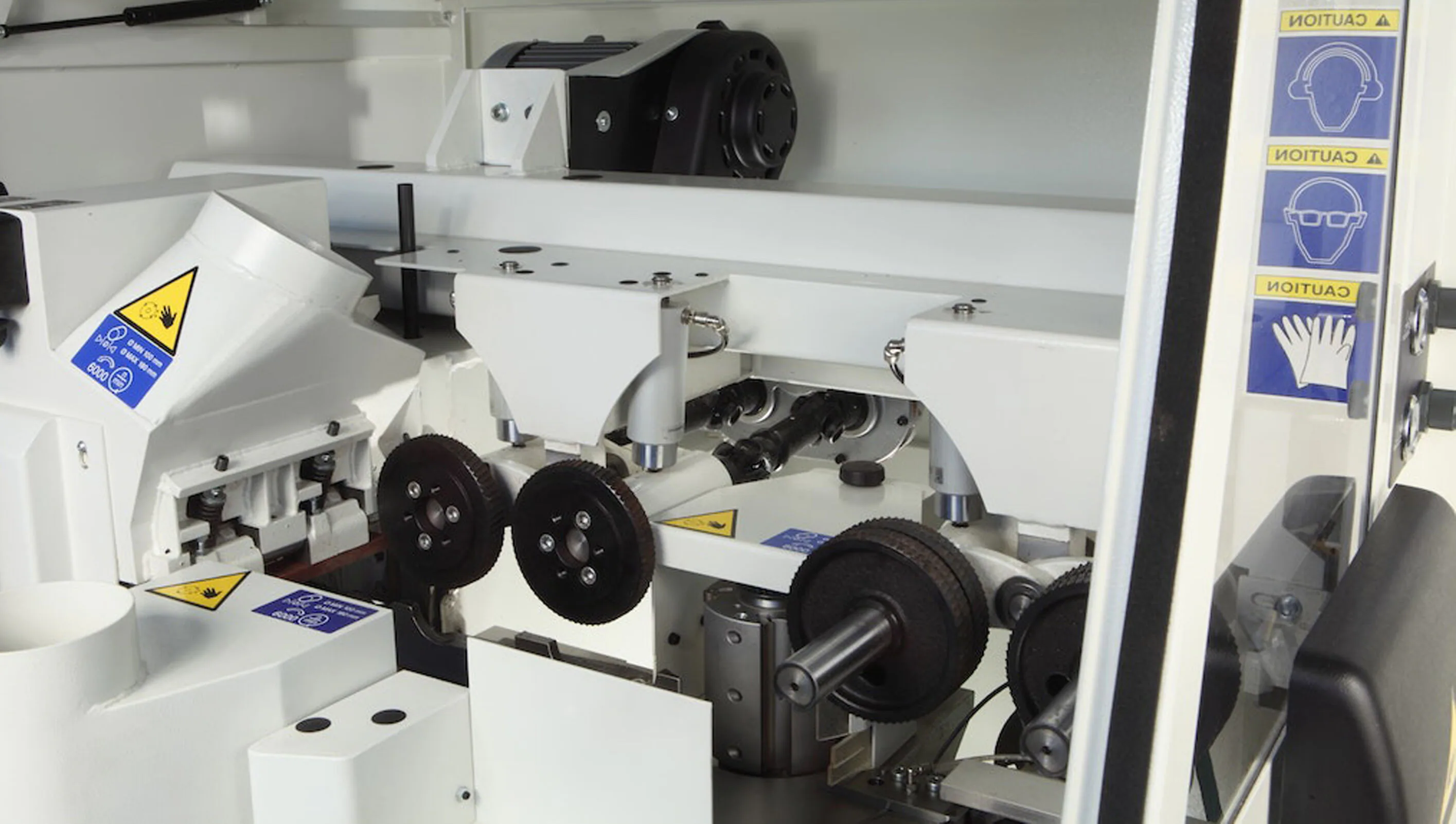 Heavy duty edge bander for working different types of panels even with delicate surfaces thanks to the upper belt presser.