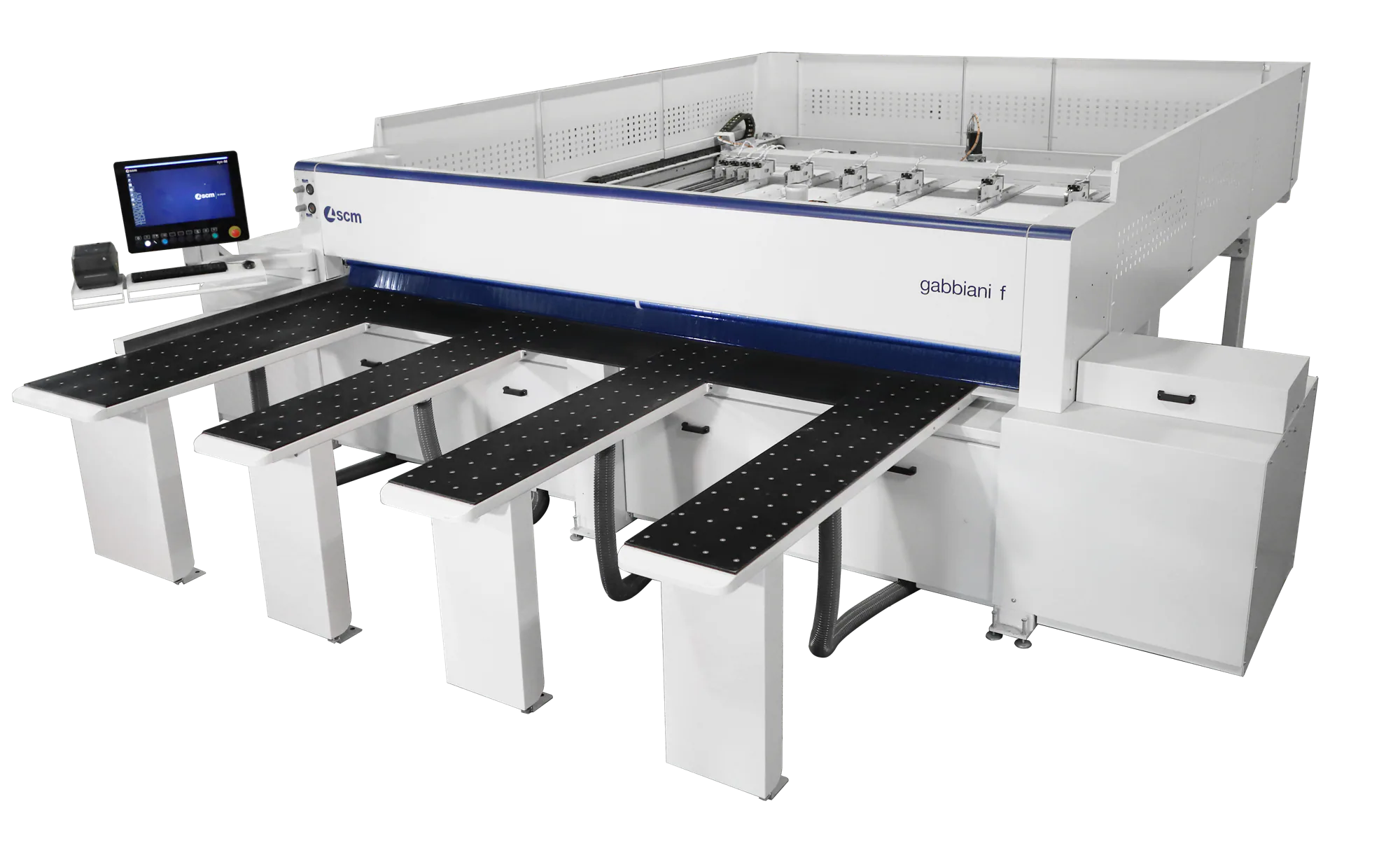 Ofrece alta flexibilidad gracias al grupo de perforación y al grupo de sierras independientes, permitiendo trabajar paneles de 150 mm hasta más de 3000 mm de longitud.