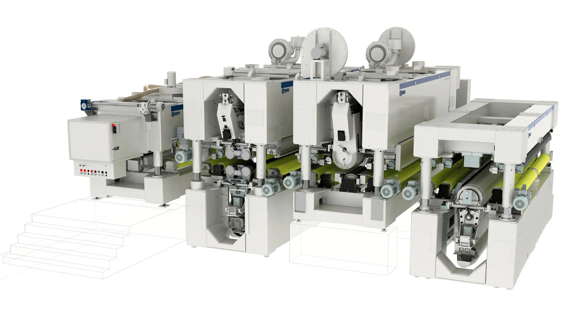 Estos nuevos módulos (grupo rodillo inferior, grupo patín superior e inferior y transversal compacto en salida) pueden combinarse entre sí según las necesidades productiva del cliente, ofreciendo una muy alta versatilidad de configuración (elemento distintivo de DMC SYSTEM XL) y la unificación de componentes y partes comunes para optimizar los costes de gestión.