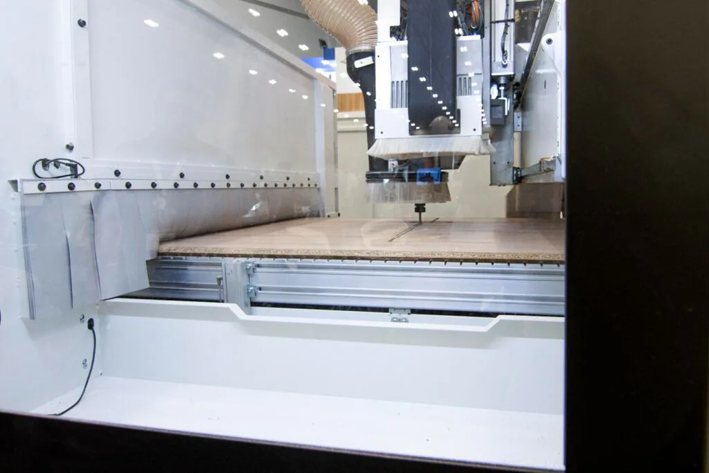 Scm presentó muchos modelos de máquina – cnc Morbidelli ,m100, enchapadoras, dimensionadora Gabbiani p75, centro de taladro Morbidelli cx100, varias máquinas para carpintería y en particular, por primera vez en México, la prensa Sergiani gs.