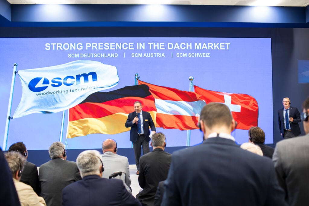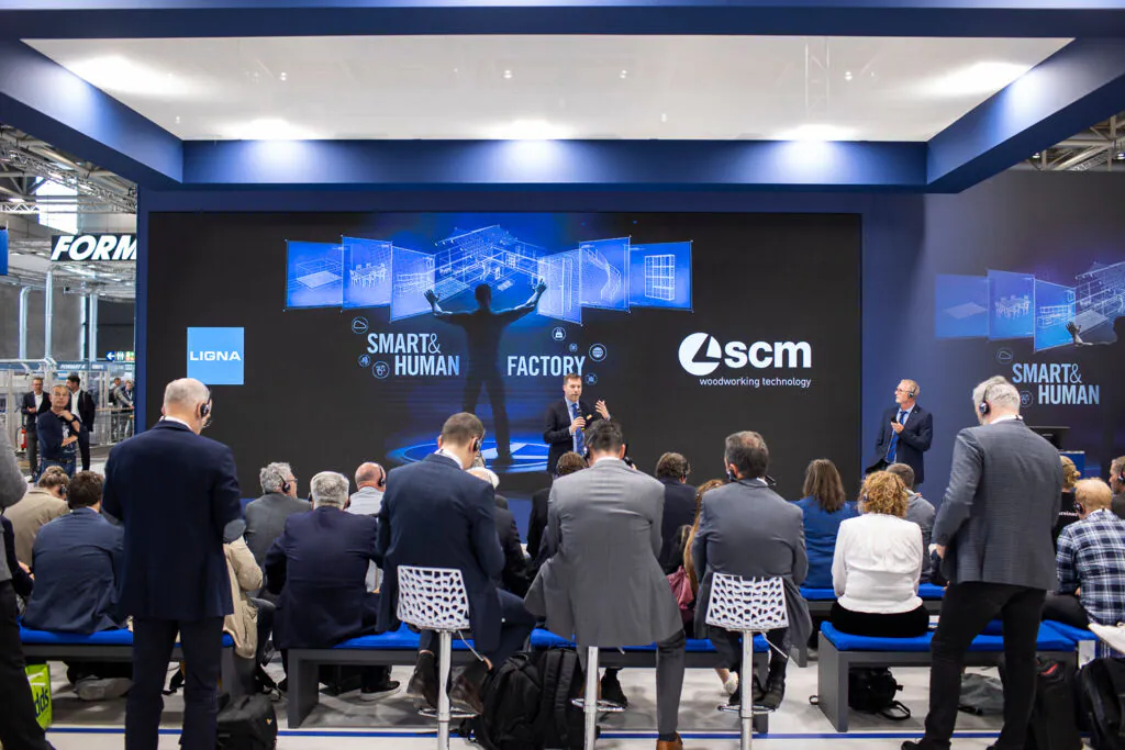 En la feria SCM presentó innovaciones para todas las áreas de aplicación del segundo procesamiento de la madera, tanto físicamente en la feria como en modo digital e interactivo. Además del rico programa de demostraciones organizadas en la zona SCM Live Show, el corazón del stand, no faltaron las aportaciones a Ligna.Recruiting y Ligna.Stage sobre las nuevas tendencias de la transformación digital y la automatización, así como de la construcción en madera y el tratamiento de las superficies.