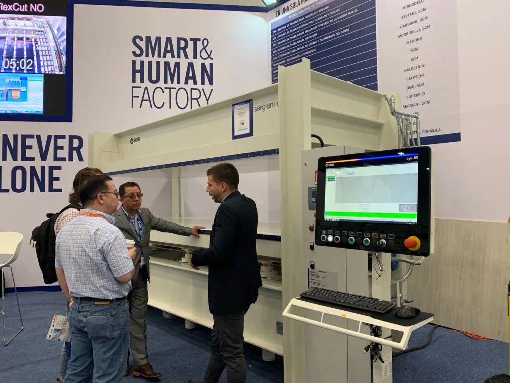 Gracias a la presencia de 20 equipos en funcionamiento – entre ellos dimensionadora gabbiani p75, varios modelos de enchapadoras, escuadradoras, prensa sergiani gs120, cnc morbidelli m100 de 5 ejes, taladro múltiple startech cn, centro de taladrado cx100, barnizadora superficie mini y lijadora-calibradora dmc sd 30 - los clientes pudieron asistir a demo en vivo, tener asesoría personalizada y descubrir las nuevas tecnologías.