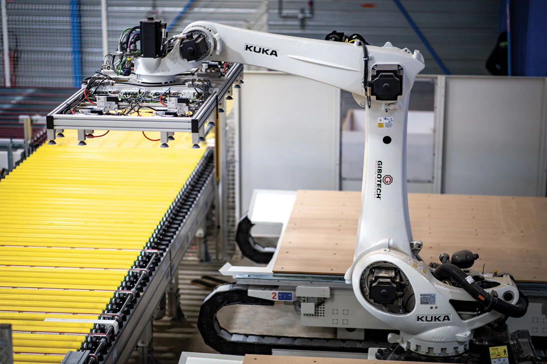 More recently, Gautier opted for another ambitious project for its third plant in Saint-Prouan: a fully integrated, high-automation line for “batch-one” machining. This is one of SCM’s most advanced engineering projects, a line extending 100 metres and entirely produced by the Italian group to meet Gautier’s growing demands - and those of the furniture industry in general - for solutions capable of producing furniture with plenty of flexibility and a low impact on the workforce. These advantages are accompanied by high machining quality and precision, an optimisation of materials and the reduction of intermediate magazines. This line includes a storage and nesting area with two flexstore hp automatic magazines, an ergon nt cnc nesting machining centre and a robot that picks up machined pieces and places them on a moving roller unit as far as a mahros station to then connect with the next edgebanding cell. This second plant sees a stefani one single-sided edgebander in action aided by two mahros automatic loading and unloading stations. Another connection station conveys the edgebanded pieces to the next drilling area, with two morbidelli ux200 cnc drilling centres with automatic unloading. Further downstream, we find a sorting and outfeed area with a storage cell with vertical magazine, where the panels are sorted in fully automatic mode by another two industrial robots. What is also key on this line is the supply of software with supervisors and software for the optimisation and tracking in real time of the entire process.