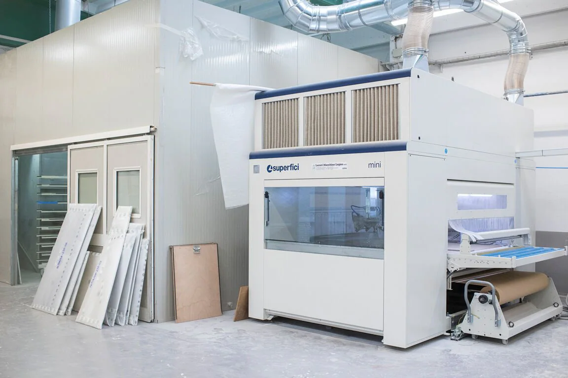 A key example was the recent purchase of a “mini plus p” from Superfici. The market offered painting machines mainly specialised in other sectors, like car bodywork, that were only moderately and sufficiently suited for to machining wood. This led to a number of critical issues including: difficulty painting edges, a waste of paint and failure to replicate the process. The introduction of Superfici’s “mini plus p”’ sprayer coater was a game changer for New Team, solving all the critical issues that the company had encountered but which, to a certain extent, are common to those working with manual sprayers. The advantages which now elevate New Team’s production to a higher level are: