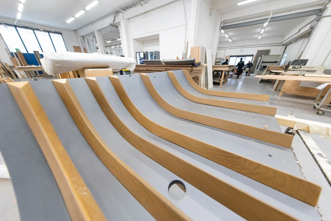 The beating heart of New Team is its team of 150 people, a close-knit and highly qualified group that works in harmony to produce top-quality products. Expert joiners, creative engineers and visionary designers work alongside one another to bring life to pieces of furniture, cladding and furnishing accessories which stand out for their elegance, practicality and attention to detail. The increasingly expert exchange of specialists comes from local universities (Faculty of Architecture in Genoa and the Faculty of Naval Engineering, nautical course, Nautical Engineering, both in La Spezia) with whom New Team has established excellent partnerships where they can welcome and nurture young professionals in the industry, from designers to architects.