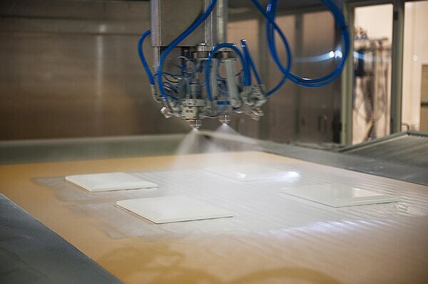 Our advanced robotic spraying system, which thanks to its production flexibility always achieves the best finishing results on shaped, profiled or flat pieces. A special water-borne lacquer with a unique natural touch will be applied on delicately soft colour tinted veneered boards.