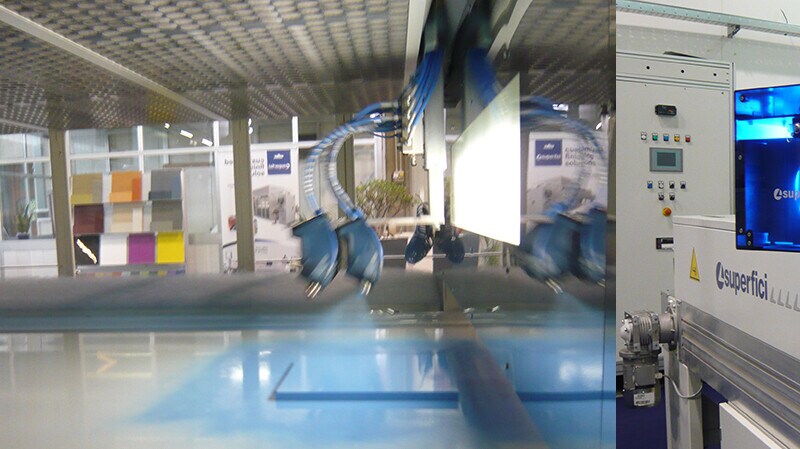 High gloss finishing is now possible with roller coating, due to the special features of our latest roller coater VALTORTA F1. A high gloss UV 100% solid top coat will be demonstrated.