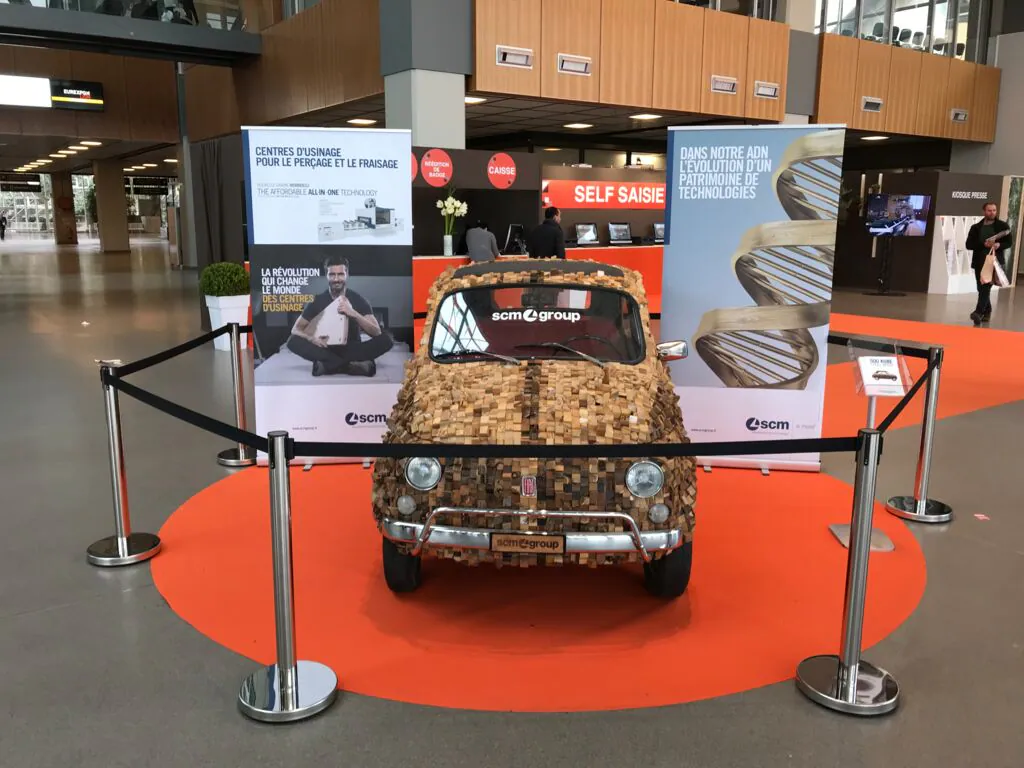 Pendant le salon Eurobois, la Fiat 500, customisée par Luciano Molinari, artisan-ébéniste, a suscité un intérêt tout particulier des nombreux visiteurs du salon.