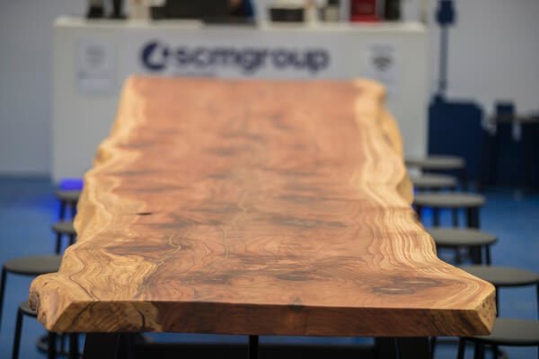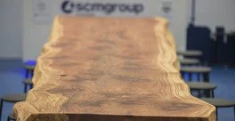 Determined to respect the natural beauty of the tree, SCM Group Australia designed the slab table so that the raw state of the wood would be conserved. The resulting piece is a magnificent slab table more than 8 metres long which will be kept as a showpiece in the SCM Sydney showroom.