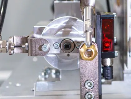 Le système OMAL Sure Shot : Le revolver d'insertion de goujon maintient un goujon pendant qu'un deuxième goujon est inséré, et via un capteur à fibre optique, vérifie que le prochain goujon est présent pour éviter les erreurs d'alimentation. Le système de revolver "SURE SHOT" d'OMAL garantit qu'un goujon est inséré à chaque fois !