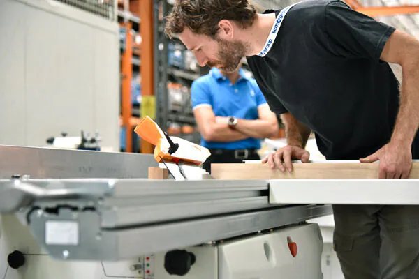 C'est précisément grâce à cette relation toute particulière qu'il entretient avec les machines que SCM a contacté Boris Beaulant. Ce menuisier hors du commun s'est fait connaître des dirigeants du groupe en publiant une vidéo où il montrait comment il avait fabriqué des extensions de construction à l'aide de sa table d'usinage Minimax c26. C'était là le début d'une relation fructueuse, avec pour point d'orgue un stage de trois jours au sein de l'usine de l'entreprise à Villa Verucchio. Pendant ces trois journées, Beaulant et les techniciens de l'entreprise ont discuté de concepts clés comme la simplicité d'utilisation, l'ergonomie, les fonctions et le maniement des machines combinées Minimax.