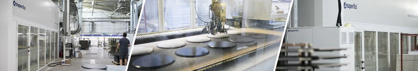 Il robot Superfici è progettato per mantenere l’ambiente di lavoro pulito e ottimale anche in caso di verniciature critiche, grazie ad un sistema di pressurizzazione con aspirazione all’interno della cabina. L’utilizzo è molto semplice e versatile: è possibile infatti trovare il corretto ciclo di spruzzatura per ogni tipo di finitura grazie ad un accurato e versatile controllo software del braccio. E’ possibile così anche programmare la posizione e l’inclinazione delle pistole adattandole anche per la verniciatura dei bordi. Il robot vernicia anche pezzi molto alti, fino a 120 mm e, all’evenienza, può essere utilizzato anche per spruzzare a regola d’arte solo la parte interna dei pannelli. Il risultato, in termini di qualità e produttività, è ottimale grazie anche all’efficiente sistema di filtrazione a secco e al sistema di trasporto a carta.