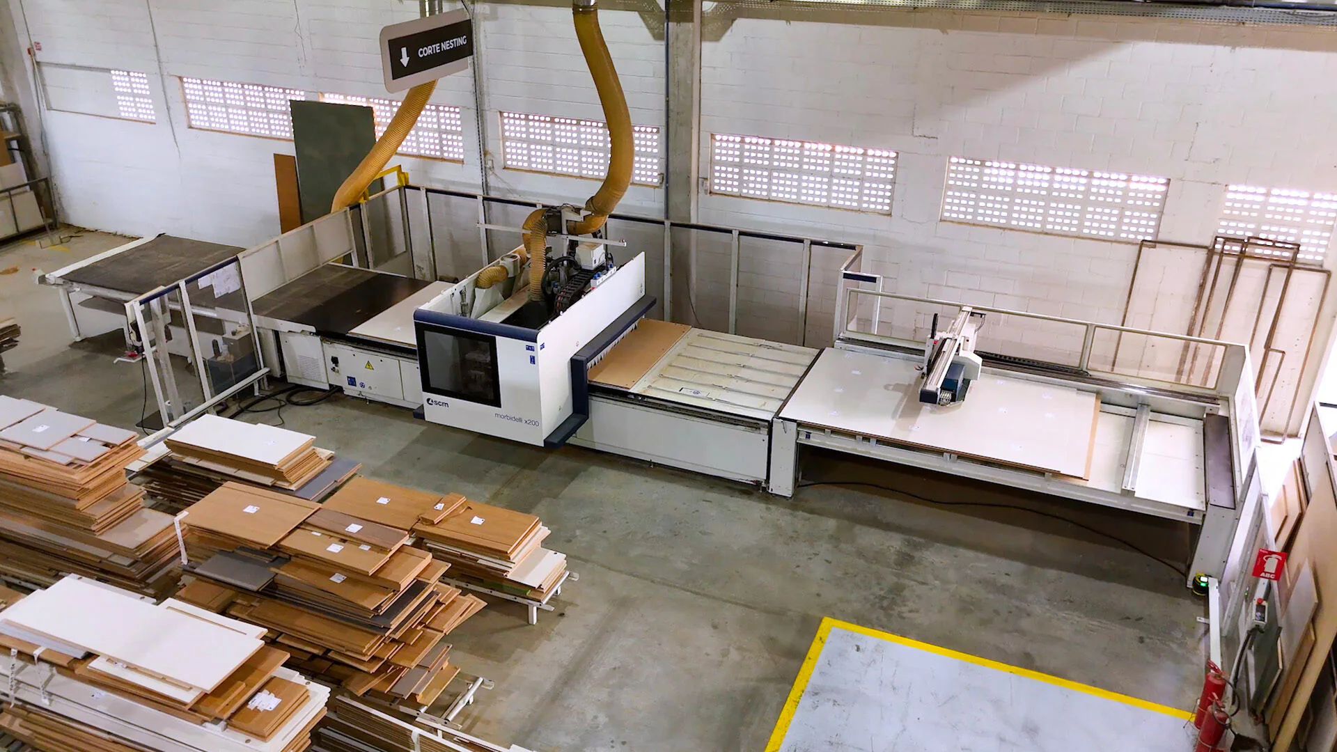 Il percorso di OG Ambientes è segnato da costanti investimenti in tecnologia, ma è nel 2012 che questa dinamica azienda brasiliana arriva ad un punto di svolta decisivo. È in quest’anno, infatti, che inizia la partnership con SCM, uno dei maggiori produttori mondiali di tecnologie e servizi per il settore del mobile, ed è sempre nel 2012 che OG Ambientes comincia a trasformare i suoi processi produttivi. Da questo momento, con l'acquisizione del primo centro di lavoro del gruppo italiano, l'azienda ha trovato non solo l'affidabilità di cui aveva bisogno, ma anche un partner strategico per la sua crescita. La decisione di rinnovare completamente il parco industriale di Goiânia, nel 2021, ha rappresentato una pietra miliare nella storia di questo lungimirante produttore sudamericano. Oggi quest’area si estende su una superficie di 3.300 metri quadrati e conta un team di 21 dipendenti, tutti impegnati a trasformare le materie prime in pezzi di alto livello. Il risultato di questo investimento è un aumento della capacità produttiva, con la lavorazione di circa 100 pannelli al giorno.