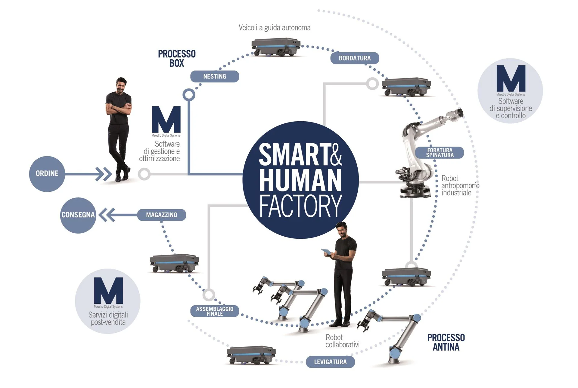 Un modello produttivo all’avanguardia per l’industria del mobile, completamente automatizzato e integrato dalla robotica collaborativa. Questo il focus dell’Open House “Smart&Human Factory” in programma a Rimini, dal 31 gennaio al 2 febbraio 2019, nel Technology Center dell’Headquarter SCM.
