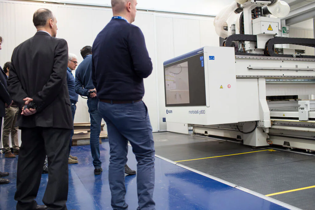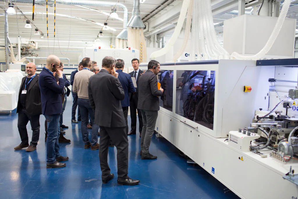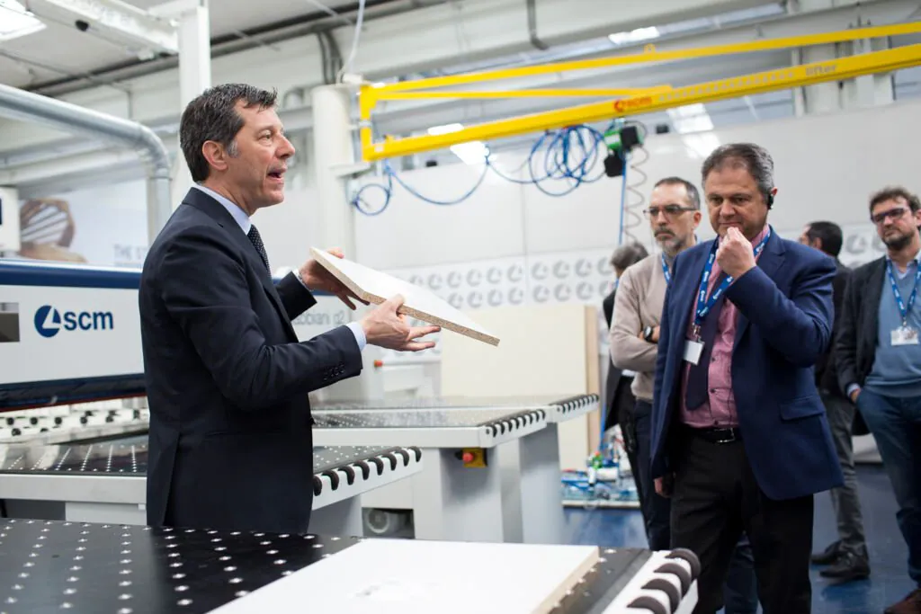 La delegazione è stata accolta dal Presidente di Scm Group Giovanni Gemmani che ha illustrato la storia, i valori e le diverse realtà aziendali e tecnologiche che rappresentano oggi il Gruppo. Il Direttore Tecnico Federico Ratti ha quindi accompagnato i visitatori nel nuovo Technology Center di SCM e nel cuore del Digital Hub, vetrina delle soluzioni all’avanguardia realizzate dal Gruppo per rendere sempre più smart e custom ogni fase di lavorazione, in linea con la rivoluzione portata da Internet nell’automazione industriale.