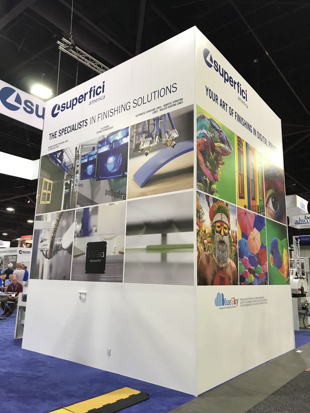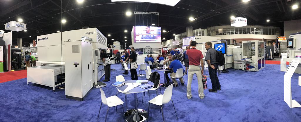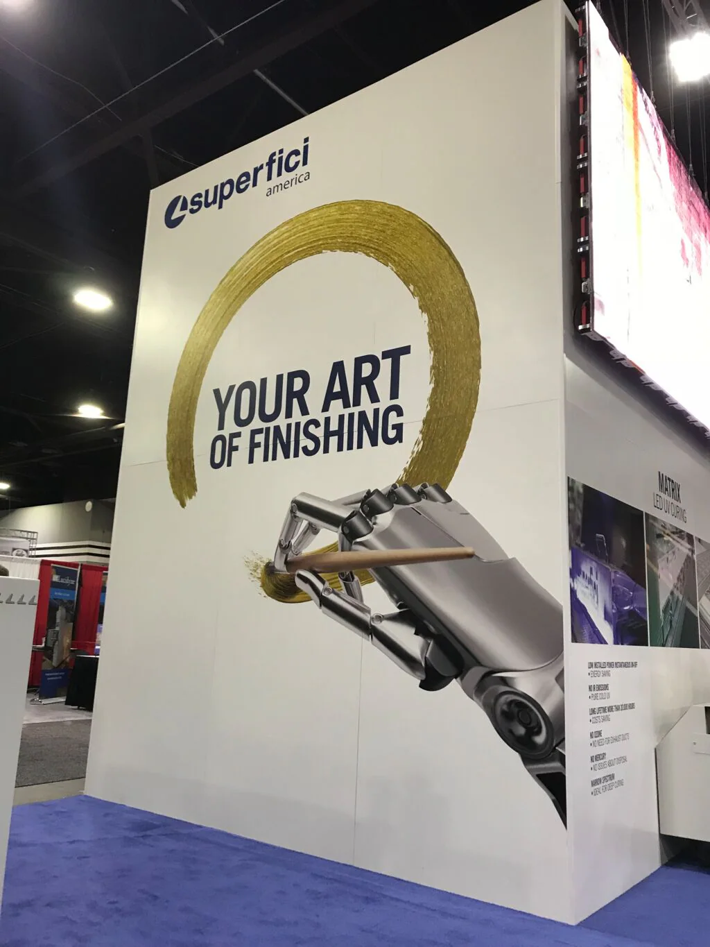 Superfici America ha presentato nuove soluzioni, come la stampa digitale, sistemi LED UV e robot collaborativi, senza dimenticare i sistemi consolidati per il trattamento delle superfici come le spruzzatrici magnum e compact, verniciatrici a rullo valtorta F1 e levigatrici dmc.