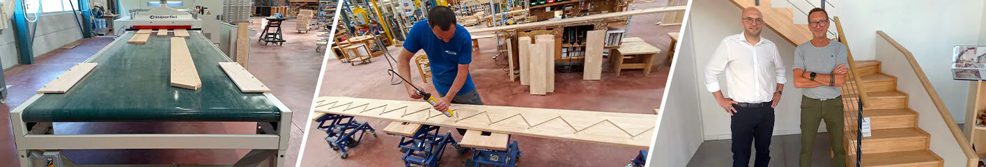 “Per quanto riguarda l’approvvigionamento, scegliamo essenzialmente prodotti semilavorati, in modo da poterci concentrare il più possibile sulla nostra attività principale di produttori di scale”, spiega Jean-Charles Lechaux. In termini di essenze, Escaliers Plasse sceglie principalmente il legno dell’albero della gomma e il faggio, ma anche, in misura minore, il pino silvestre oppure essenze più nobili come il rovere.
