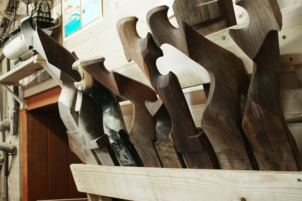 In his botega, Piero produces a wide range of products besides those meant for gondolas. They include plenty of oars and oarlocks for rowing race boats. In this line of products there is a continuing research and development process in order to be able to offer racers the best performing tools: during centuries-old traditional rowing races, the shape of an oarlock and the thickness of an oar can make the difference between winning and losing.